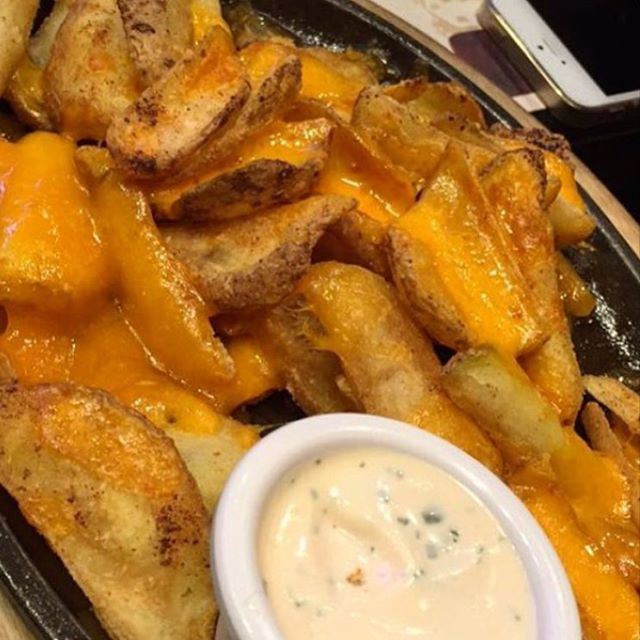 Time for a snack 🙊🍟 Fries n Cheddar with sour cream dip! Yum 😍😍 @roadsterdiner (Roadster Diner, Beirut City Centre)